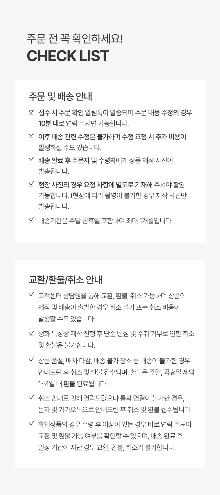 ① 필수 : 주문자성명 , 주문자 휴대폰번호 , 배송지주소 , 받는분 이름 , 받는분 휴대폰 번호 , 결제기록